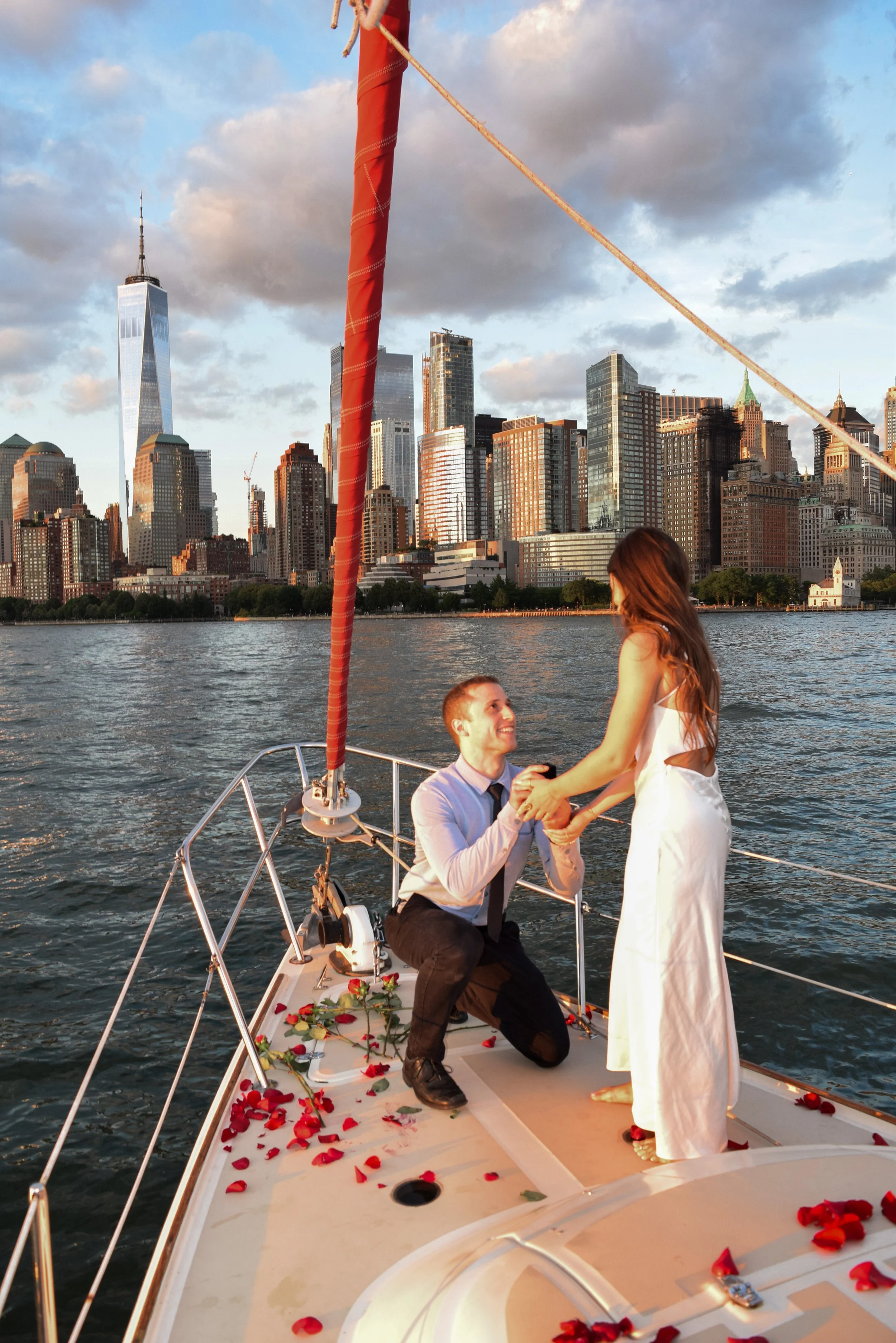 Fast forward a few years and on June 28th, 2022, Matthew got down on one knee in the middle of the Hudson river with a view of that same city that brought them together all those nights ago.